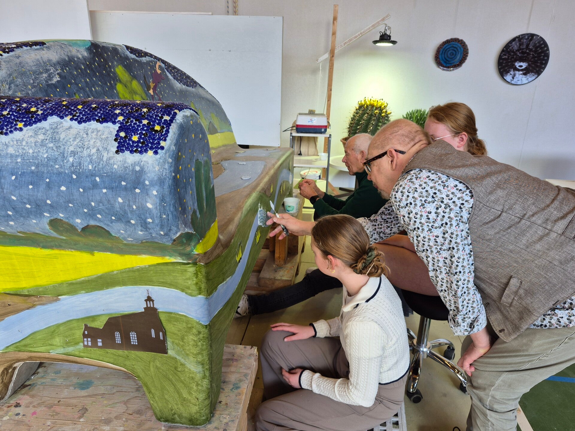 In 2024 ontstond het idee van een mozaïekbank in Sellingen. Een Social Sofa als verhalenbank, ontmoetingsplek om uit te rusten, bij te praten én te genieten van kunst.